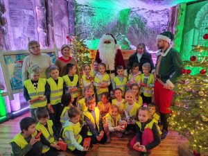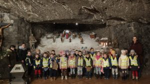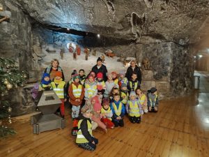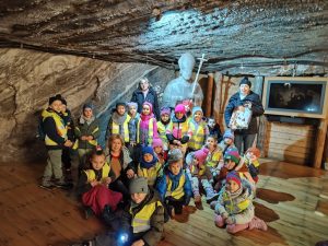 Zwiedzanie Kopalni Soli Bochnia to była świetna zabawa, ale także niezapomniana przygoda. Pełna emocji i wrażeń. Zwiedzanie rozpoczęło się emocjonującym zjazdem prawdziwą windą górniczą – po którym dzieci wyruszyły w podróż podziemną kolejką. Na trasie poznawaliśmy tajemnice solnych korytarzy, słuchaliśmy fascynujących opowieści o dawnych czasach i sekretnych skarbach . Dzięki interaktywnej atrakcji historia Kopalni Soli Bochnia stała się niezwykłe realistyczna i angażująca dzieci . Ponadto byliśmy uczestnikami specjalnej misji mikołajkowej, która polegała na poszukiwaniu zaginionego worka Mikołaja . Udało się dzieciom rozwiązać wszystkie zagadki i zadania przygotowane przez Mikołaja . Nasza misja zakończyła się sukcesem – spotkaniem z Mikołajem , który obdarował nas prezentami.