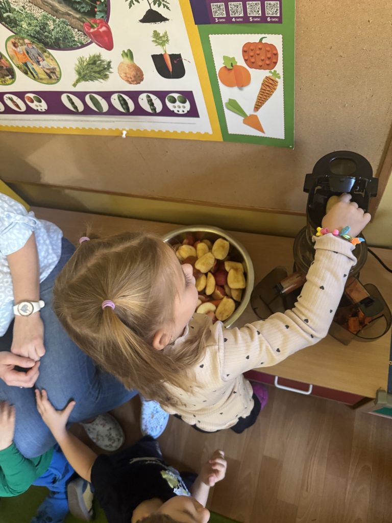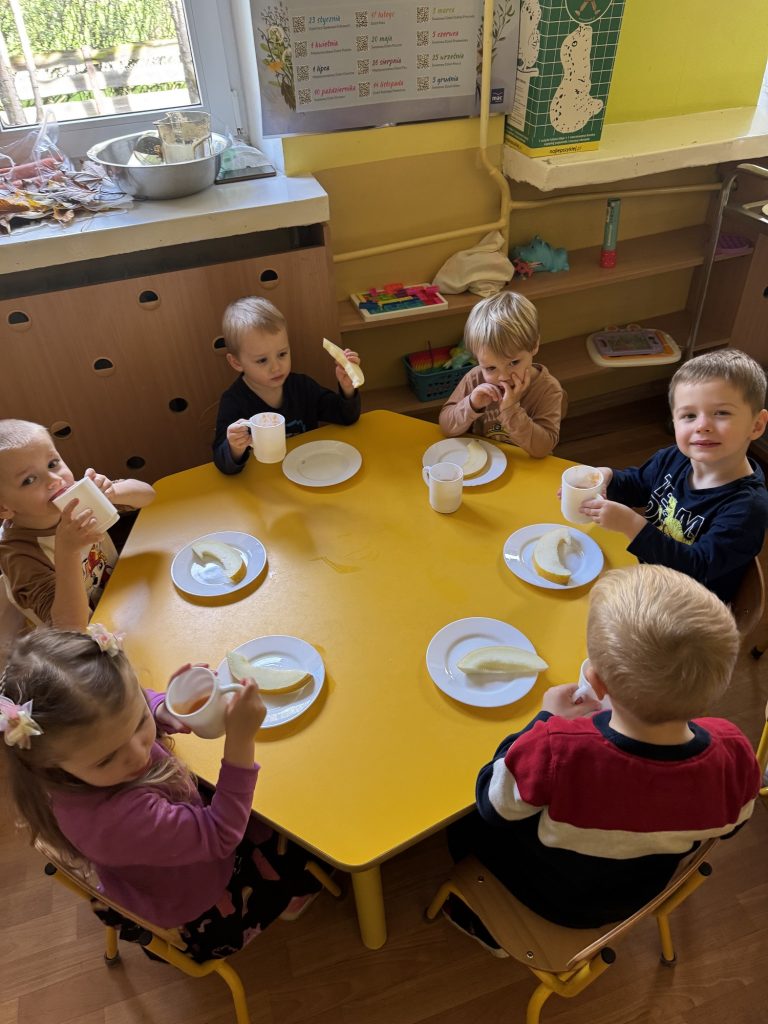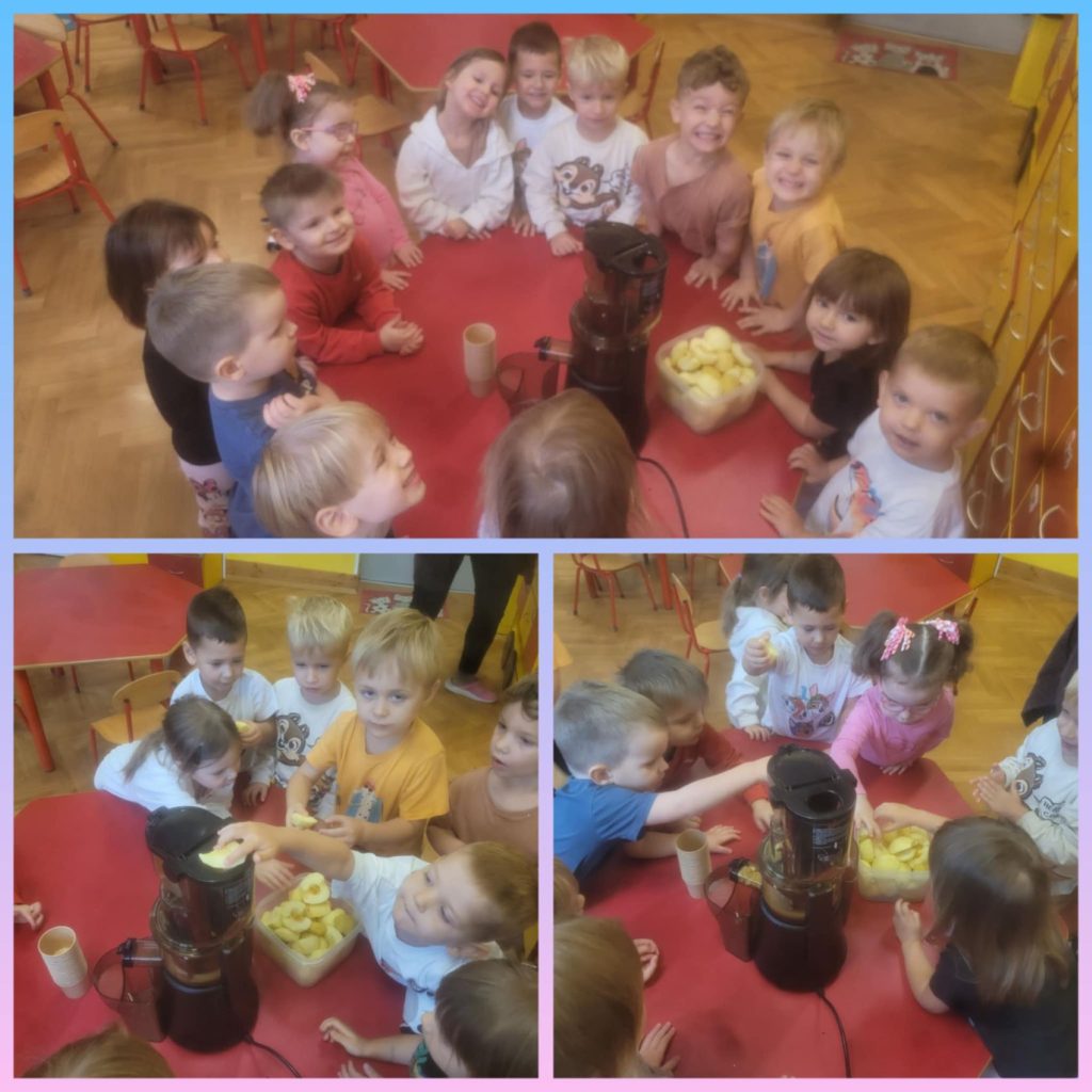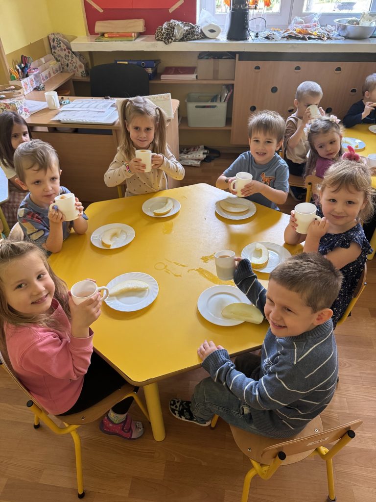 W grupie maluszków odbyły się wyjątkowe zajęcia z okazji Dnia Jabłka. Dzieci poznały różne odmiany jabłek, ich kolory, kształty oraz wartości odżywcze. Przedszkolaki uczestniczyły w zabawach ruchowych i wspólnym przygotowywaniu soku z jabłek. Podczas zajęć nie zabrakło też zajęć plastycznych – dzieci odbijały kształt jabłek. Wszystkie aktywności miały na celu zachęcenie dzieci do zdrowego odżywiania i pokazanie, że jabłko to nie tylko pyszny, ale i bardzo zdrowy owoc.