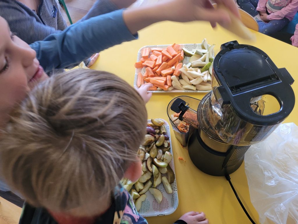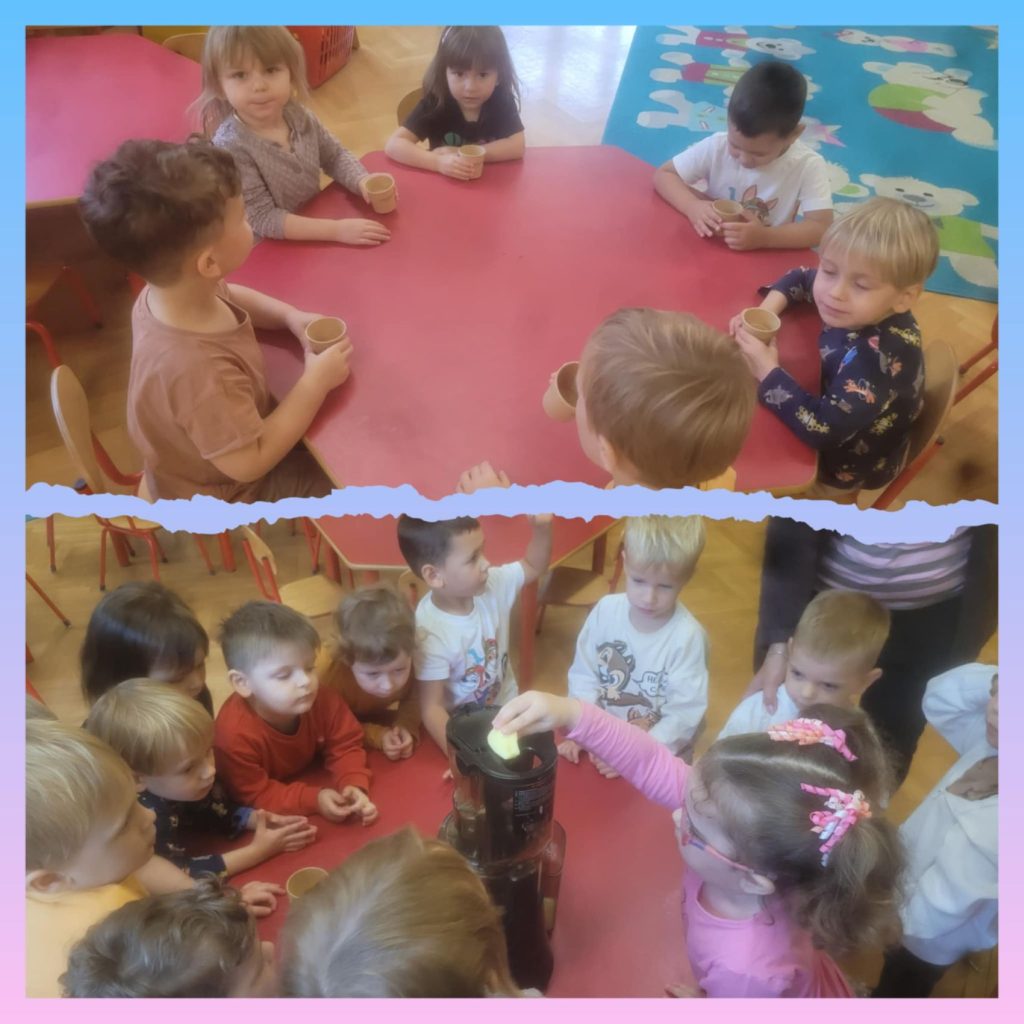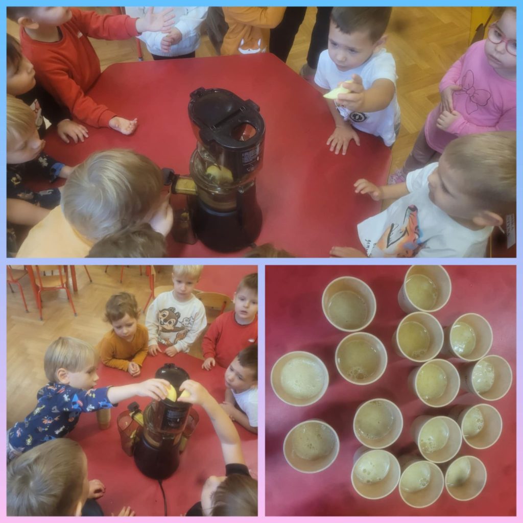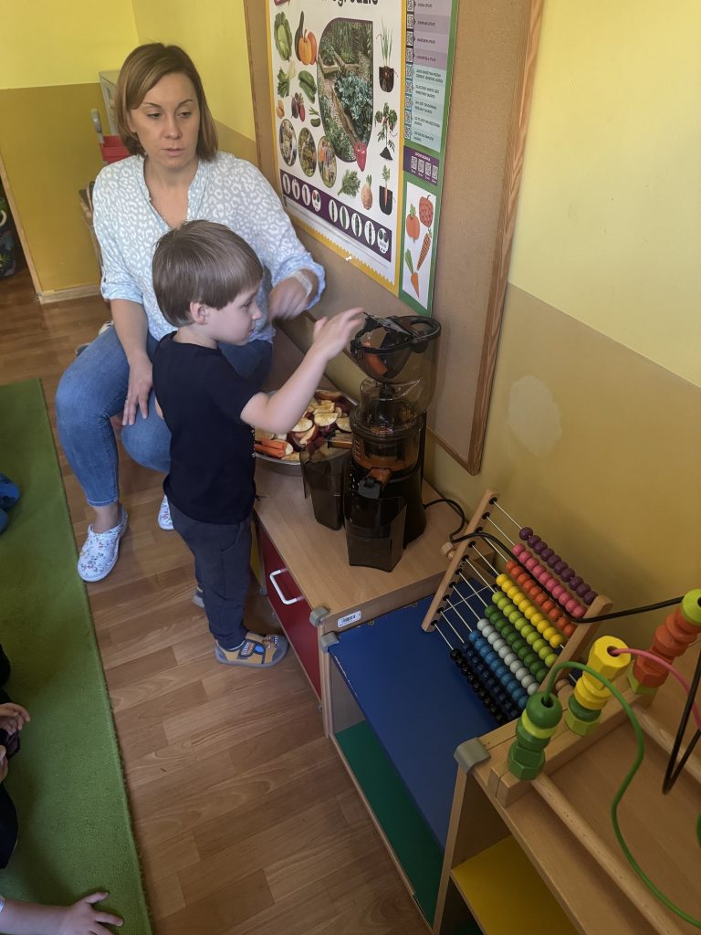 Natomiast grupy starsze realizując tematykę owocowo- warzywną również przygotowały witaminowy sok.