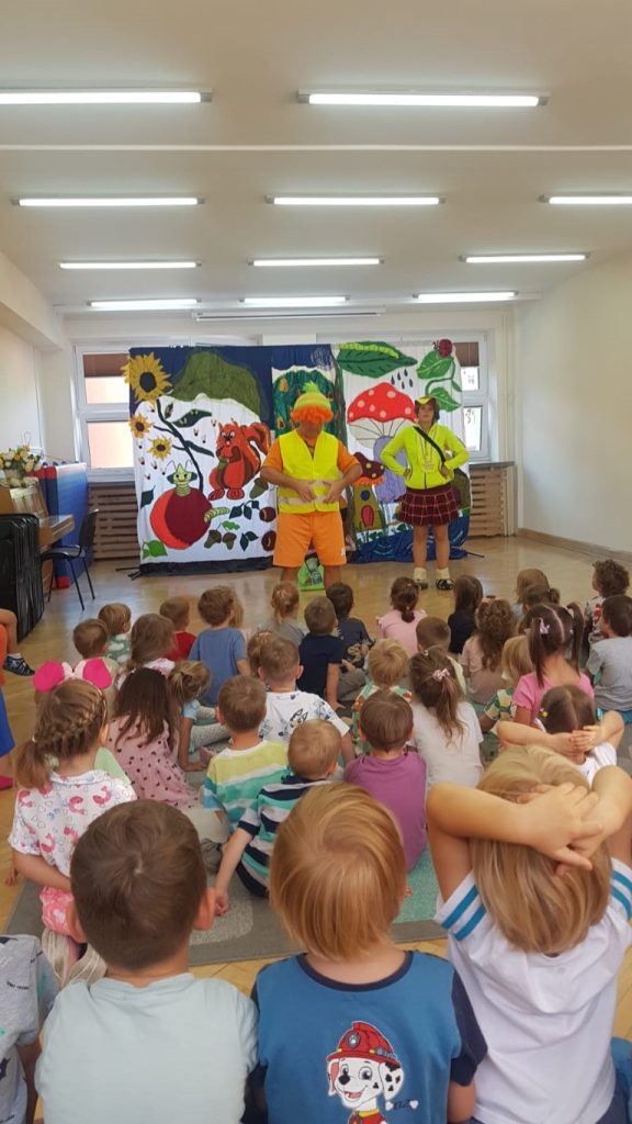 22 września świętowaliśmy obchody Dnia Przedszkolaka. W tym dniu odwiedzili nas aktorzy z teatrzykiem „Kalejdoskop zagrożeń”. Dzieci dowiedziały się o zagrożeniach w ruchu drogowym oraz o tym, że nie należy rozmawiać z obcymi osobami, ani przyjmować od nich żadnych prezentów. W każdej grupie odbyły się zabawy taneczne oraz rozdanie skromnych upominków.