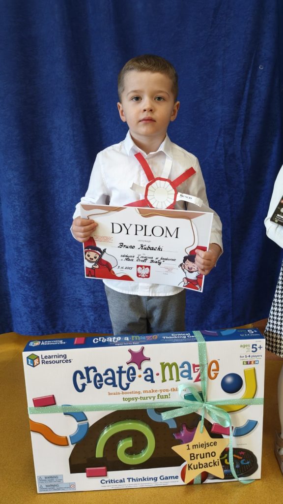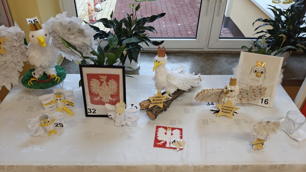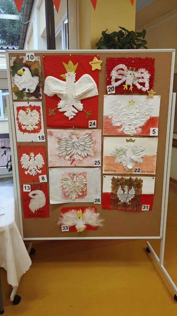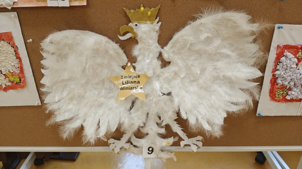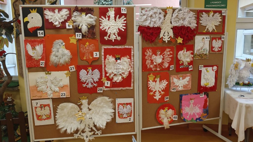 W minionym tygodniu w naszym przedszkolu rozbrzmiały dźwięki polskiej historii i radości, a to za sprawą Konkursu Patriotycznego pod hasłem „Nasz Orzeł Biały”. Celem konkursu było przede wszystkim rozwijanie poczucia tożsamości narodowej i pielęgnowanie miłości do Ojczyzny wśród rodziców i naszych najmłodszych dzieci. Wydarzenie przebiegało w radosnej i podniosłej atmosferze. Wszystkie dzieci biorące udział w konkursie wykazały się ogromnym zaangażowaniem i pomysłowością. Wszystkie prace były przygotowane wspólnie z rodzicami, co dodatkowo wzmocniło więzi rodzinne wokół tematyki patriotycznej. Jury, w skład którego wchodzili rodzice oraz kadra przedszkola wyłonili zwycięzców: