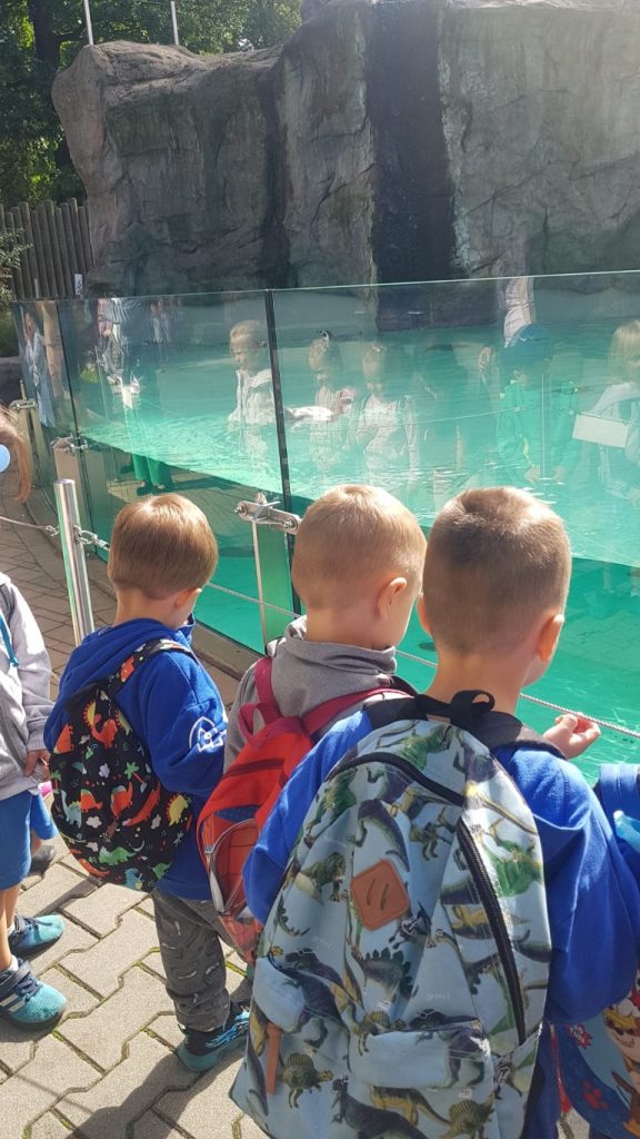 Dzieci z grupy VII i III w dniu 19 września wyruszyły na wycieczkę do ZOO, aby zobaczyć na żywo zwierzęta zamieszkujące różne kraje. Mogły między innymi zobaczyć na żywo żyrafę, słonia, pingwiny, małpy, kapibarę, hipopotama oraz wiele dziko żyjących dużych kotów : panterę, tygrysa, lwa. Z zaciekawieniem obserwowały ich zachowanie, słuchały również ciekawostek o życiu i zwyczajach oglądanych zwierząt. Mieliśmy także możliwość obserwowania karmienia zwierząt przez ich opiekunów. Duże wrażenie na dzieciach zrobiło oglądanie zwierząt nocnych w specjalnym ciemnym